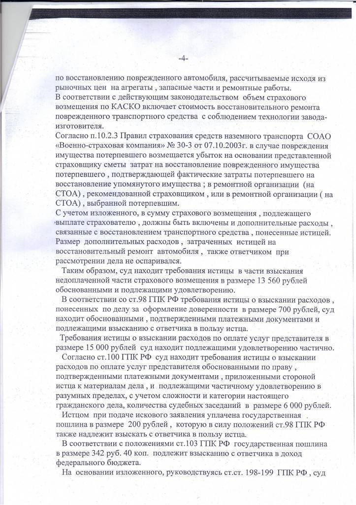 • Удовлетворен иск к страховой компании на ремонт автомобиля