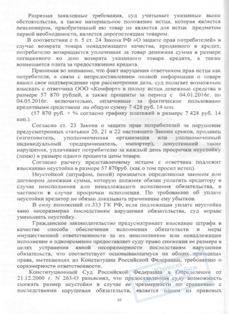 Делом П.О.М. занималась юрист нашей компании. При ее содействии суд не только постановил вернуть уплаченные пенсионеркой деньги, но и взыскать с продавца 20 000 рублей в пользу пострадавшей покупательницы.